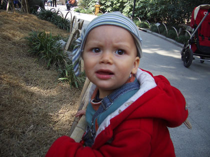 Wir haben ja ehrlichgesagt nicht damit gerechnet, aber der Kinderarzt des World Link Center (eine Organisation, die mit der medizinischen Versorgung von Ausländern unglaublich viel Geld machen muss), den wir zum Check-Up aufgesucht haben, hat uns tatsächlich gefallen. Jetzt gibt es endlich auch wieder handfeste Werte zu präsentieren: ganz knapp 80 cm groß und 11 kg schwer ist unser 11 Monate altes Sternenkind. Zu seinem sonstigen Zustand ist zu sagen, dass er an einer Hand ausgezeichnet läuft, fleißig auf Dinge zeigt und diese lautstark kommentiert, und dass er begeistert jegliches Nahrungsmittel zu sich nimmt, was wir ihm anbieten. Bedingung ist natürlich, dass wir es ebenfalls essen.