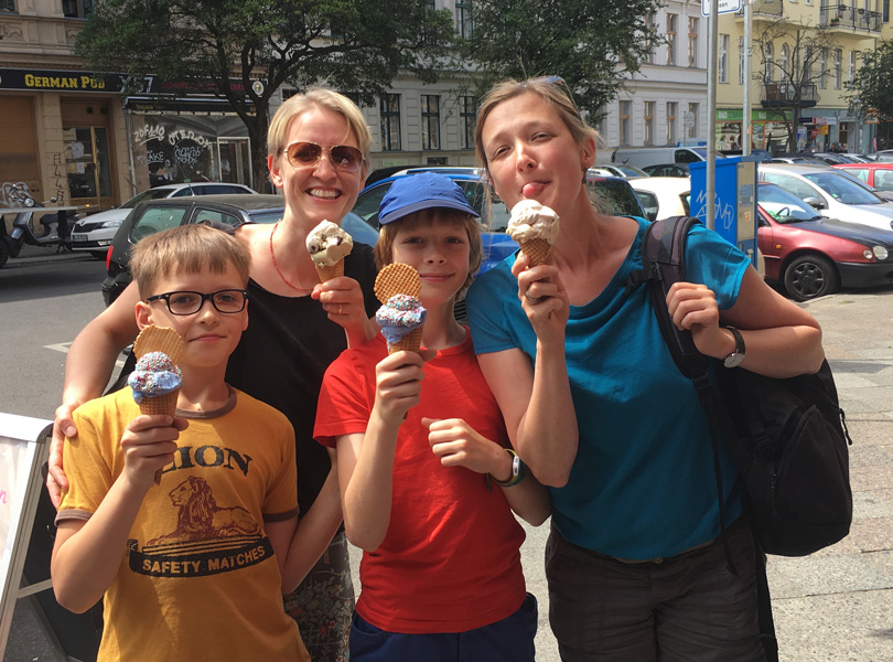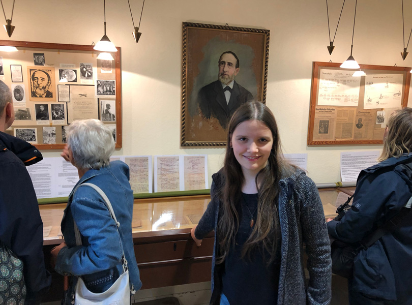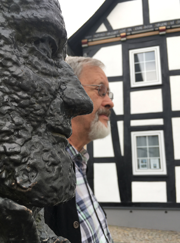 Moritz in front of my great-grandfathers memorial. He was a wellknown regional writer, and it is impressive how much of his history is still well cared for. There is a huge momorial in the center of the village, and another one in front of the former school, where he was a teacher. There is one big street named after him, and even a small local museum about his life and works. I was especially touched to recognize my (young) grandfather participating in one family gathering in the 1930s.