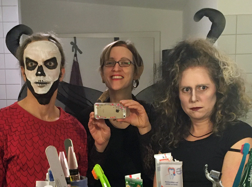 For years, my schoolmate Katha has been celebrating her birthday with a big theme party. We both spent our youth in Aachen and actually enjoyed dressing up for Karneval. We both moved to cities where most of the people are not used to that tradition. (That is a very friendly expression for a lot of Berlin people actually detesting Karneval.) But in contrast to me, Katha has her birthday in February, so just in time for a motto party and she made a tradition out of it herself. For years, I was jealous of it and wanted to be invited. So I asked for it and got invited! And so I celebrated her dressed up as Vignette Stonemoss (I still love those ears!) and spent a funny evening with her friends, neighbours and family.