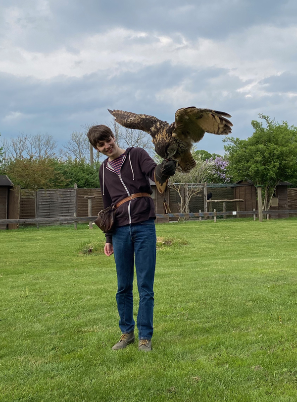 This was Moritz Christmas present: a training course in falconry, right next to the famous park of Woerlitz. Here, he met with a golden eagle, a barn owl, a snowy owl, a falcon, an eagle owl, a vulture and a burrowing owl. In German, the last one is called Kanincheneule 'rabbit owl' because it is so tiny. It was especially lovely!