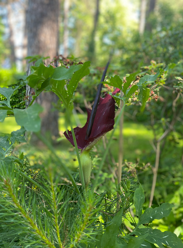 One of the most fascinating plants in our garden: A faecal smell attracts small flies that are to be trapped by a ring of hairs above the male flowers. The insects are trapped beneath and are dusted with pollen before escaping and carrying the pollen to the spadices of other plants, where they pollinate the female flowers. Once the plant is pollinated, the small hairs wither away and the trapped insects are released.