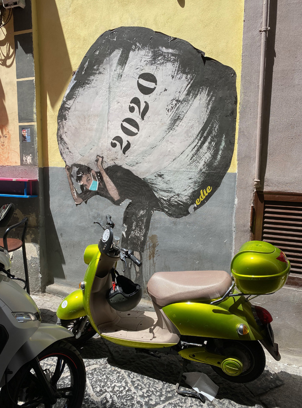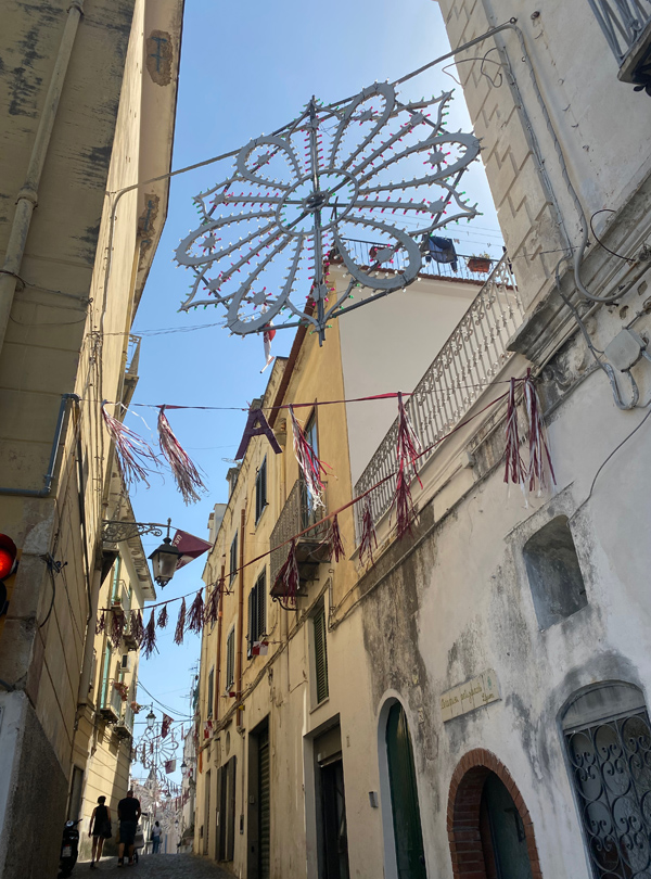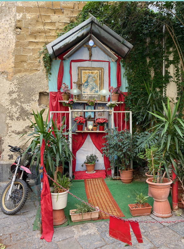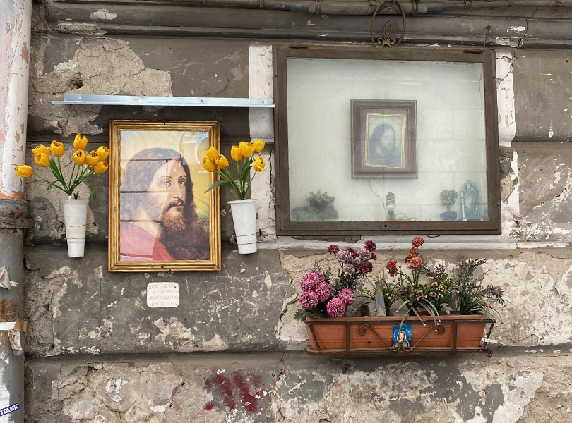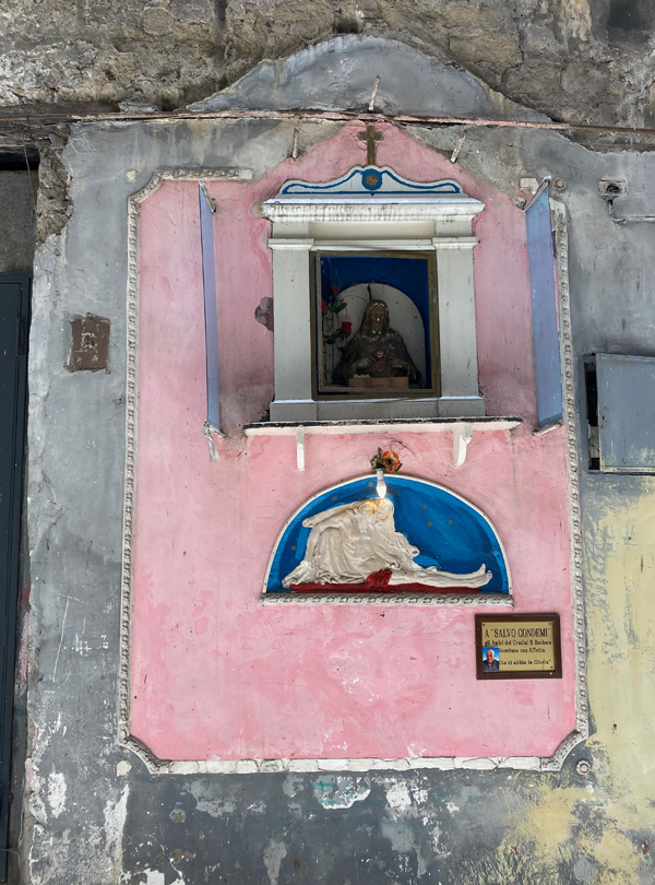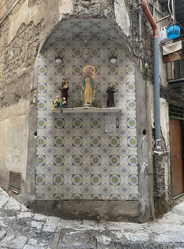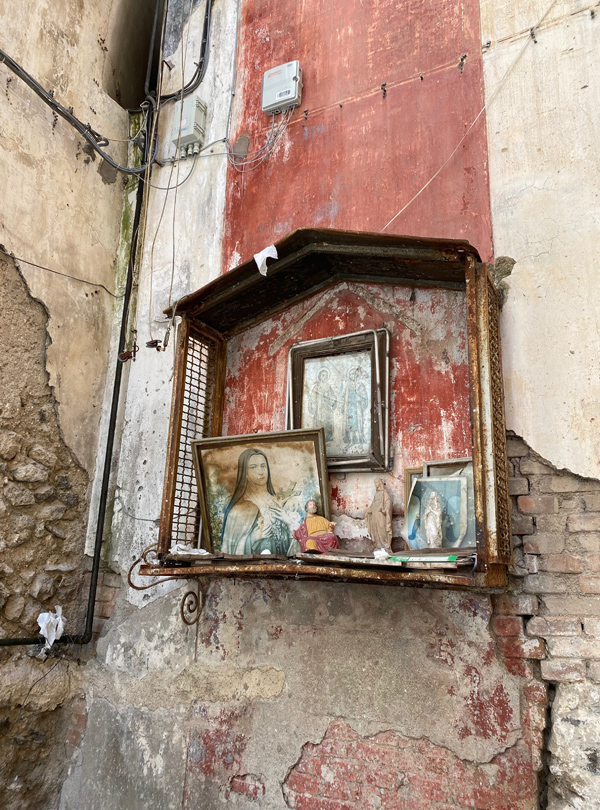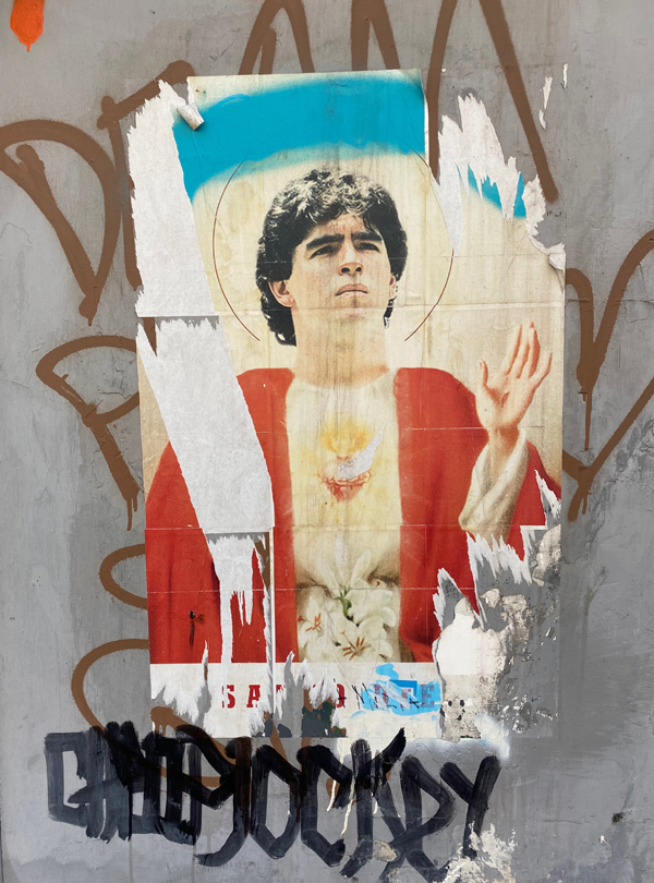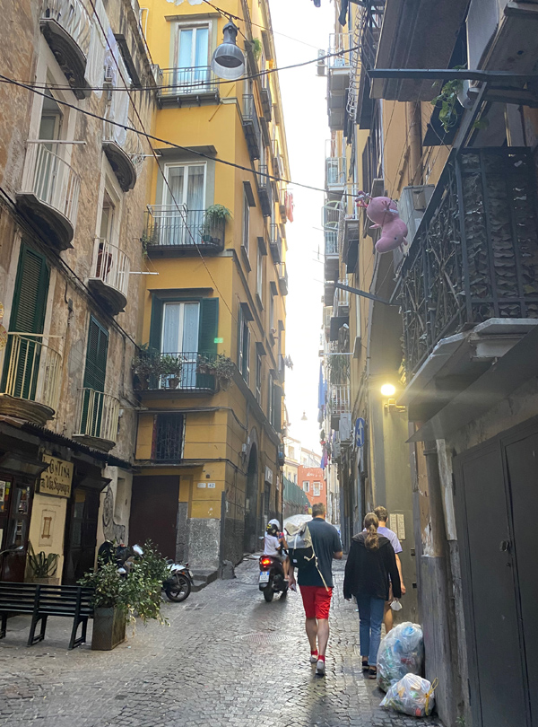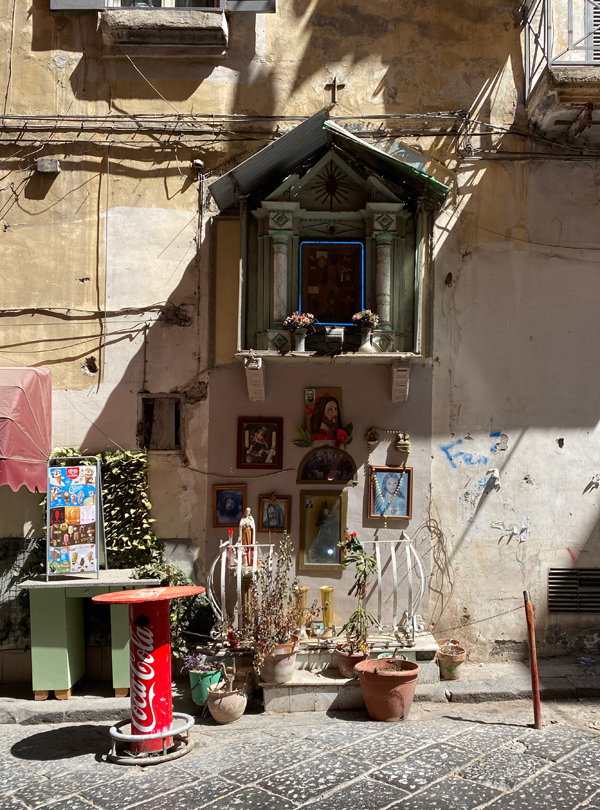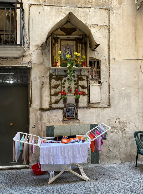 In the city of Naples, I just feel very much in love with it all. The cobblestone, the pizza, the little flags. The laundry, the altar decorations. And, of course, Diego Maradona! We had a great time buying an Ukulele and enjoyed watching Italy winning the European championship.