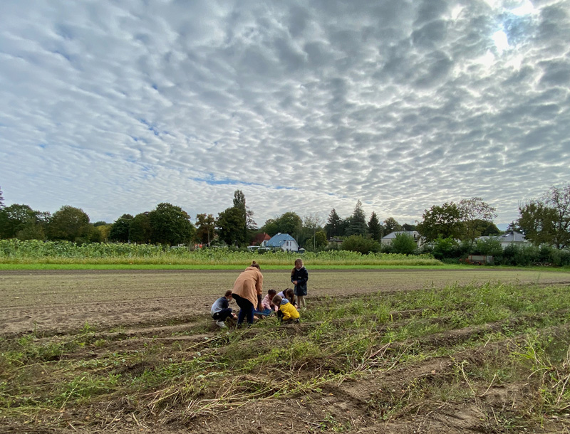 A day trip to a local farm. First, the kids were disappointed, because there were no animals. But then, they were super excited to go on a treasure hunt: we digged for potatoes and onions and washed, peeled and cut everything into small pieces. Everyone loved the potato soup!