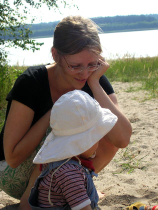 Schon neun Tage nach unserer Rückkehr nach Shanghai erscheint mir nichts ferner als der Gedanke, einen ganzen Monat weg von hier gewesen zu sein. Das mag daran liegen, dass wenig Zeit zum Eingewöhnen und Träumen übrig bleibt: Tobi verbringt seit unserer Ankunft seine gesamte Wachzeit mit Arbeiten - Moritz und ich sind also auf uns selbst angewiesen und bemühen uns, die in den letzten Wochen neu erlernten Fähigkeiten im Alltag anzuwenden, wenn auch manchmal in abgewandelter Form. Moritz schmeißt mit großem Engagement das geschnippelte Gemüse in den Topf (oder daneben) und sein Schäufelchen nutzt er, um Spielzeug aus der Kiste zu schaufeln. Der absolute Hit ist und bleibt jedoch das (oje, wie nennt man denn sowas?) Schiebeding mit den bunten Kugeln, das selbst den Küchenbesen auf der Beliebtheitsskala hinter sich läßt. Zurück nach Berlin. Nach Aachen, Remscheid, Kassel, nach Hamburg. Knapp fünf Wochen erscheinen lang, nicht aber, wenn man an so vielen Orten so viele liebe Menschen treffen mag. Für einige blieb keine Zeit, für viele nur sehr wenig, für manche (zum Glück!) recht viel. Gefreut haben wir uns über euch alle. Und damit ich jetzt nicht sentimental werde, kommen nun die Photos. Die sagen schließlich mehr als tausend Worte?!Berlin 24.07.2005 - Ankunft