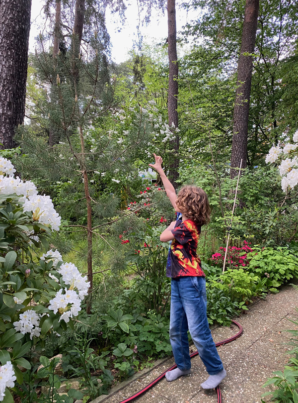 The first years, Fridolin was still taller than his pine tree. This year it is obvious the tree wins the growth competition from now on.