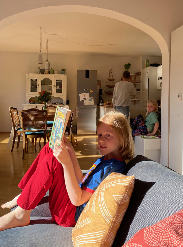 Mia and Tobi starting a new tradidtion. Walking on the weekend.