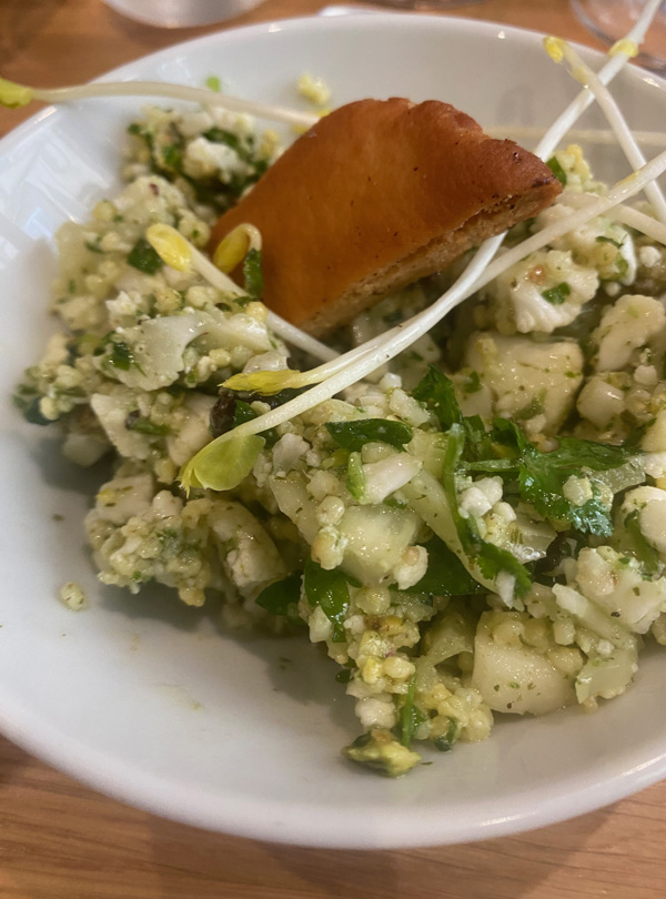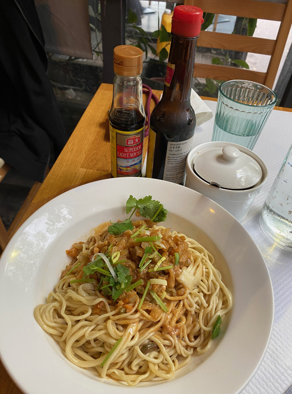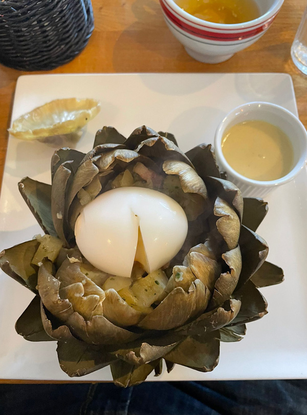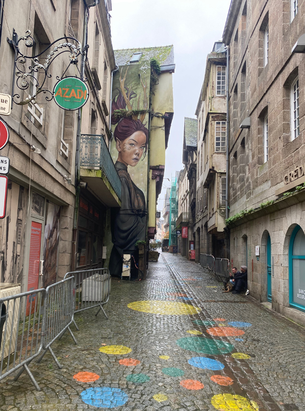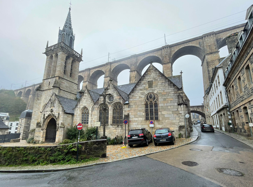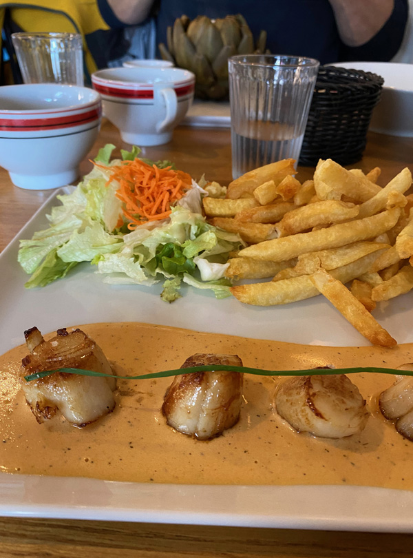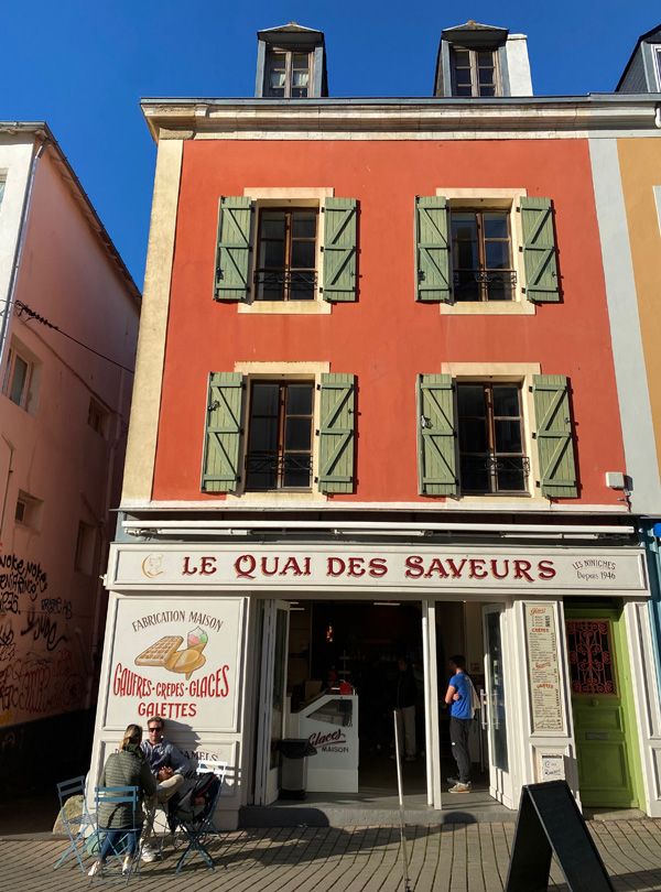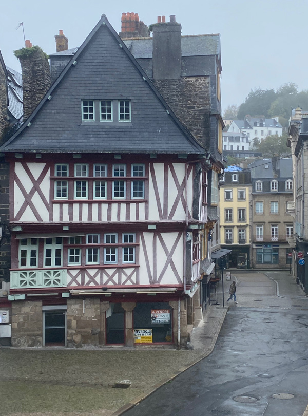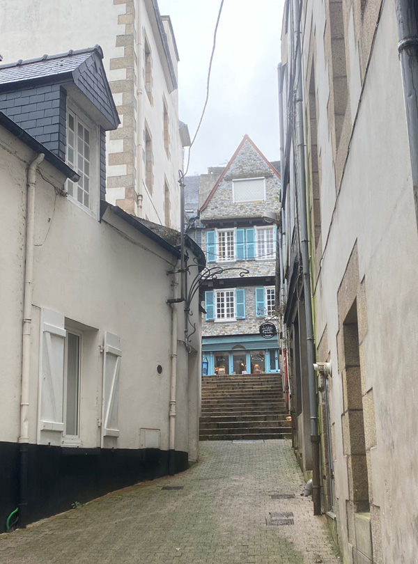 Today was a rainy day, but Morlaix was still a great place to be. What I liked best: the restaurant we visited. It was called "Bouillon". You went in, had a seat and the only questions asked were "Water with or without gas?" and "Red wine, white wine or no wine?" Everyone had the same food, and it arrived quickly and easily. I enjoyed the atmosphere very much!