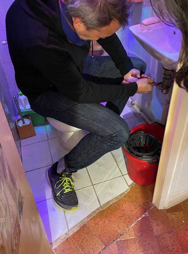 This was so funny. We were strolling through Douarnenez heading towards the port, when two women approached us looking for a strong guy to repair the siphon beneath their washbasin. Of all the people I know I would have asked Tobi, too.