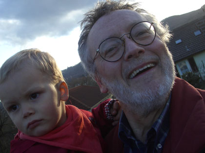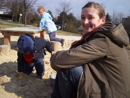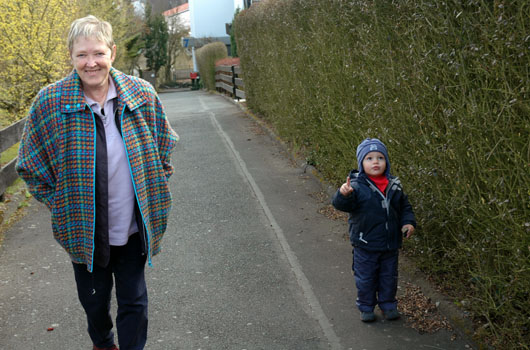 Ich schweife ab. Ich habe meine Familie gesehen (ja, auch ein Stück Aachen gab es in Kassel zu haben), sie alle haben Moritz Goldkind gesehen, überhaupt: Moritz hat Deutschland gesehen, mit weitaus aufnahmefähigeren Augen als letzten Sommer, das macht mich glücklich. Wir sind Bus gefahren, Straßenbahn gefahren, Zug gefahren, haben Sand geschaufelt, Klettergerüste bestiegen und stundenlang Steine in Bach und Regentonne befördert, wir haben tonnenweise Kartoffeln, Brötchen, Biosalat und Joghurt gegessen (da läuft mir jetzt noch das Herz über). Wie wichtig das ist, wird euch allen klar sein, und so bin ich auch sicher, niemand ist böse, den ich nicht mal angerufen habe. Manchmal muss man Prioritäten setzen. Und ich bin - so sagte Rolf - wenigstens nicht mehr so spitz im Gesicht. Moritz hat gelernt, "Ei" zu sagen (hinzu gekommen ist neuerdings auch noch "Bonbon", "Kran", "Blume", täglich wird es mehr!); Uschi hat gelernt, dass mehr Flüssigkeit in die Suppe gehört, zum Lernen ist es zum Glück nie zu spät. Und endlich hat mal jemand die vielbefahrene Straße am Lilienweg zu schätzen gewußt, die man vom Wohnzimmer aus so schön beobachten kann!