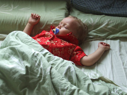 Der internationale Kindergarten lädt zum Kindertag ein und kleidet die kleinsten in traditionelle chinesische Anzüge bzw. Qipaos.Die Eltern sowie alle anderen sind entzückt und Moritz so begeistert über die ganzen Komplimente, dass er den roten Dress gar nicht mehr ausziehen will. Außerdem ein Nachtrag zu seiner Sprachentwicklung: neuerdings meistbenutzte Ausdrücke sind Maufu und Maisy, die Helden des Vorabends...