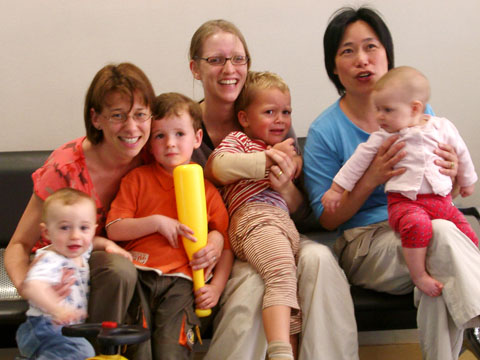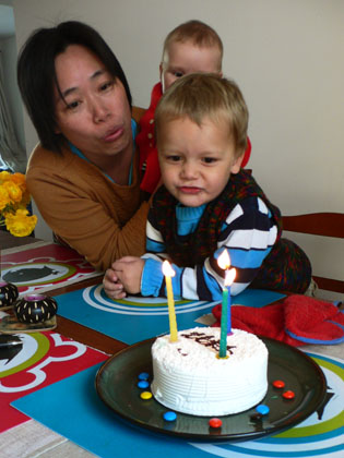 Moritz hat Geburtstag und Tobi nimmt sich einen ganzen Tag frei. Das ist nun mal ein Sonntag, der rot im Kalender angestrichen werden kann. Wir packen den ganzen Tag Geschenke aus, ein Buch von Pettson und Findus, eine Mondrakete, ein Buch über Mondraketen, eine Eisenbahnbrücke, ein Klapp-Buch über ein Mehrfamilienhaus. Alles ist toll, nur dass Moritz nun etwas Neues gelernt hat: er sieht die innenliegende Werbung für andere Dinge und jammert: „Aber das will ich auch, und das, und das!“ Es hilft keine Erklärung, dass es in China keine Brio Bahnen zu kaufen gibt; zum Glück aber ist er immer noch ein kleiner Junge und vergisst im nächsten Augenblick schon, was er gerade eben noch für das Weltwichtigste gehalten hat. Und ich dachte immer, wenn das Kind dann erst mal drei Jahre ist, ist alles auf einen Schlag total einfach! Wahrscheinlich wurde das auch so propagiert, denn was würde es auch bringen, wenn man wüsste, dass es Probleme gibt wie z. B. „mein Kind ist nun eigentlich zu groß und schwer für die größte im Handel erhältliche Windel, ist aber noch gar nicht motiviert, ein Töpfchen zu benutzen“. Oder „Mein Kind weint und schreit nach zwei Tagen zu Hause, wenn es wieder in den Kindergarten soll, und ich bin ihm da leider körperlich kaum mehr gewachsen.“ Wozu würde das führen? Die meisten würden sich doch für und nicht gegen Kinder entscheiden, man würde nur hoffen, dass der Handel sich umstellt bzw. man würde frühzeitig mit Krafttraining beginnen. Und letztendlich ist und bleibt trotz aller Schwierigkeiten Moritz unser Sonnenschein, und den will man ja nicht missen.