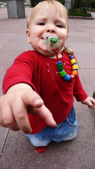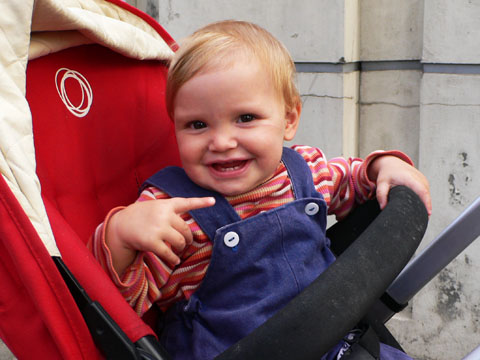 Nun ist die Biene schon ein ganzes Jahr auf der Welt. Und welch eine Metamorphose sie durchlaufen hat: Plötzlich kann das eben noch so zerbrechliche Wesen schon selbst laufen, in was für einem Affenzahn! Und am liebsten würde Mia auch selbst Schuhe anziehen, selbst Zähne putzen und, natürlich, vor allem selbst essen. Telefonieren beherrscht sie auch schon nahezu perfekt, antwortet, wenn der Gesprächspartner eine Pause macht und belustigt damit nicht nur sich, sondern auch alle anderen. Zur Feier des Tages gibt es Würstchen und Grillfleisch vom deutschen Metzger, und viele kleine Freunde bzw. Freundinnen kommen zu Besuch. Moritz hat mit mir Kuchen gebacken und packt alle Geschenke für seine Schwester aus. Nur schade, dass keine Eisenbahn dabei war...