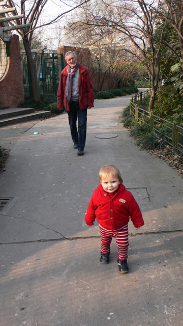 Ein paar Tage um Weihnachten herum hätte es wirklich schneien können, Temperaturen um den Gefrierpunkt, zu Moritz Freude treiben große Eisschollen auf den Wasserflächen. Dabei aber herrlicher Sonnenschein und ein blauer Himmel, auf den man im Sommer lange warten kann. Doch gerade haben wir uns an die dicken Jacken, die Mützen und Handschuhe gewöhnt, da taut es wieder. Es ist so warm, dass wir einen halben Tag auf dem Sandspielplatz und einen weiteren im Zoo verbringen. So kann man die langen Kindergarten-Ferien genießen!