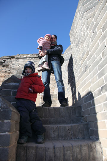 Die letzte Gelegenheit ist gekommen, Sonja zu besuchen, die zu Weihnachten nach Deutschland zurueckgeht. Noch dazu leben wir seit fuenf Jahren in China, und da ist es an der Zeit fuer Riki, Moritz und Mia: die grosse Mauer endlich auch zu sehen! Ein Familienausflug, weit weg vom Alltag.