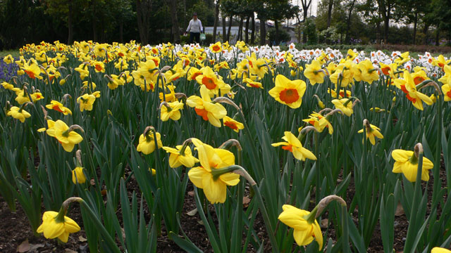 Moritz wuenscht sich, endlich mal wieder in ein Gewaechshaus zu gehen. Wir machen uns also am Karfreitag auf in den Botanischen Garten, jetzt hoechst praktisch mit der U-Bahn zu erreichen. Die Kirschen bluehen, die Sonne scheint. Ich bin irritiert ob der Menge Muell, die die anderen Besucher, zumeist Schulklassen, auf Wegen und Wiesen, praktisch ueberall fallen lassen. Florian aber hat eine andere Erklaerung: "Wooaaahh, der Osterhase hat soooo viele Geschenke gebracht, das haben die anderen Leute alle schon aufgegessen!" Ein Glueck, wir finden auch noch einige Schokoladeneier zwischendrin, die von den chinesischen Kindern wohl niemand bemerkt hat... wieso auch, wenn man bereits alle Taschen voller Packungen voller Chips und Kekse gestopft hat?