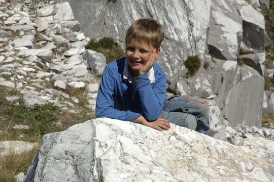 In August 2002, we visited Azzano because a couple of my most beloved fellow students took a sculpting course with Michel and Frieder. Of course, Tobi remembered the hiking path we fell in love with then, and we walked again, in autumn instead of summer, accompanied by two kids, and enjoyed the great view on the marble cutting, the Apuani Alps and the ocean!