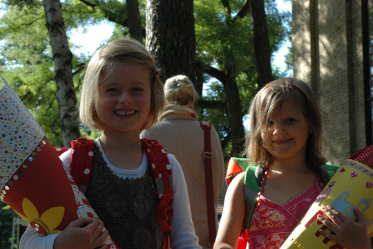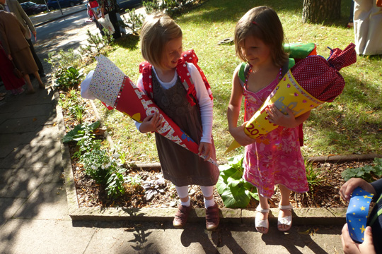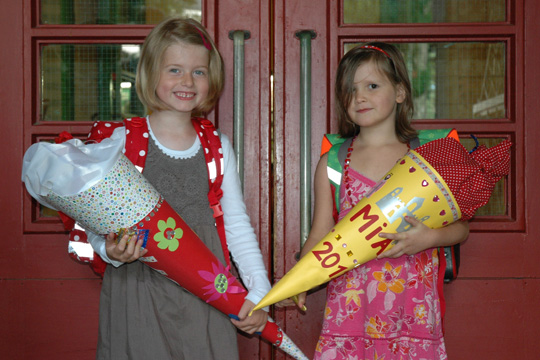 Since born in october, school starts earlier for Mia than for Moritz, who was already six when being enrolled.