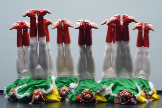 I don't regret our decision to move back to Germany, but I really DO miss China - at least now and then. I miss the daily chatting with taxi drivers, tailors and DVD vendors, and I have rare moments walking the quiet streets of our neighbourhood where I get homesick for the daily dirty colourful mess of Shanghai. So I enjoyed this evening with the "Red little blossoms" a lot. It reminded me of both - good and bad - lots of sparkling costumes on the one hand, brutally trained kids on the other.
