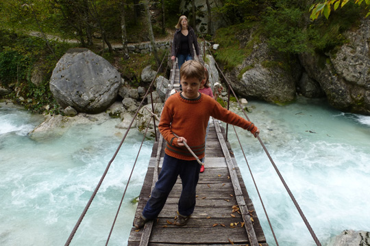 First time happening: we walked long beautiful hours along the river Soca with its origin as our destination, when I heard Tobi shout: STOP RIGHT THERE! The slippery path went steeper and steeper and it felt more like clinging along steel ropes than hiking. Still though, it was a fascinating landscape and we almost did not mind the way back in pouring rain without protection - neighbours staying at the same ecologic farm saved us from the last three to six kilometers... it was even better to arrive back at a warm and cosy place afterwards!