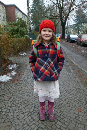 Mia somehow likes my old clothing, and I like seeing her wearing it, so here is my old jacket, my woolen hat, and Ronit wearing my old skirt in picture 2.