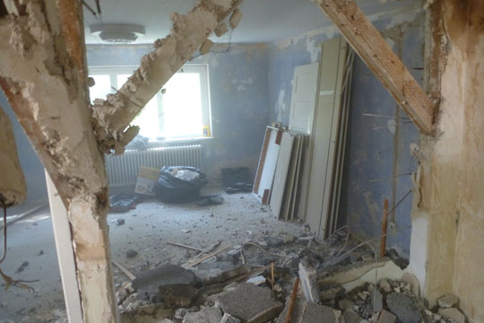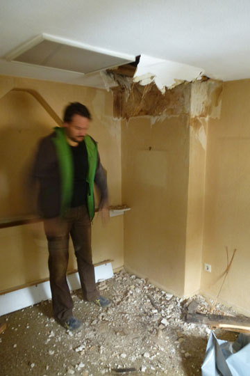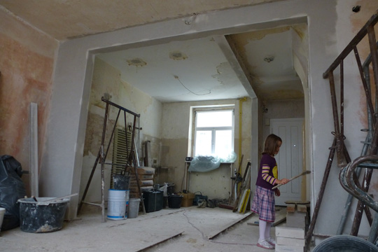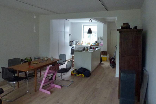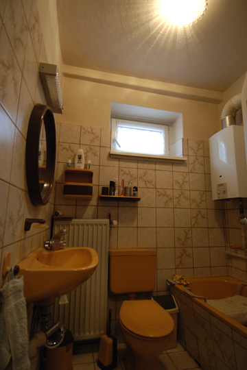 We bought our house a year ago, and the first nine months I really thought there are more intelligent options of burn one's money. It took us just days to take down some walls, but it took weeks to peel off various layers of wallpaper. And it took months to get the necessary construction permits. But of course, time went on and of course, progress showed once the bathrooms were tiled and the floor refurbished. A week ago I started packing and I will also never ever be so stupid again to think our household will fit into 60 boxes. I promise now and here to take pictures once I am finished so that I remember very clearly: we don't need anything else at all because no matter how fancy: we actually have enough. And I will try to never ever call anything (e.g. children's rooms) dirty anymore that can be cleaned within one hour. 'Dirty' is scrubbing a door leaf for one hour each side and realising it is actually white lacquer beneath it all! Sitting here typing it sounds as if I was exhausted which I am but I am highly proud, too: We did our part in the safeguard of the cultural and environmental heritage by fully sanifying a class listed monument. And I think we did a damn good job.BEFORE