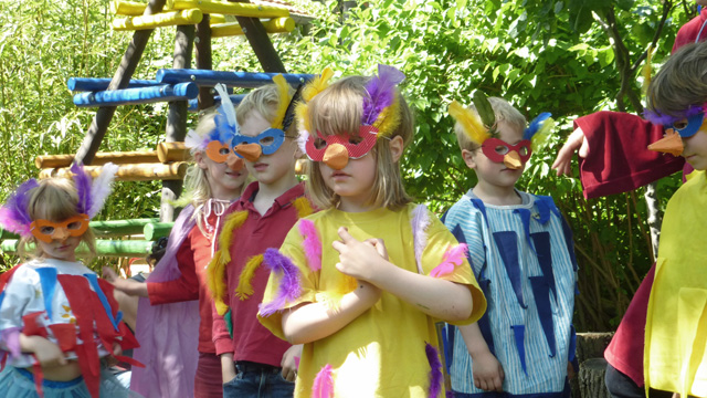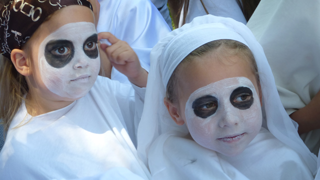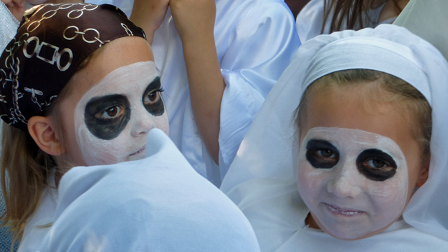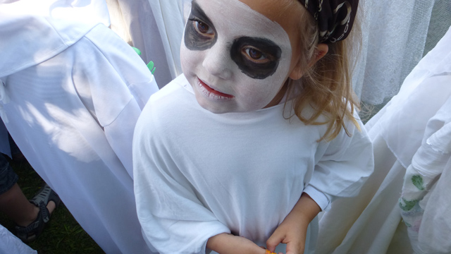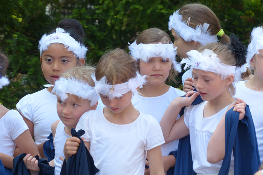 A funny constellation. First a beautiful little swan, then a scary ghost. Mia participated in two performances in one morning.