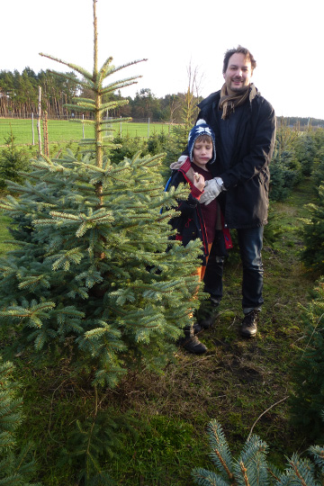 This year is the first for us to cut down a Christmas tree for our home. It was impressing to see how many people seem to do this every year, even at the strangest spots in the middle of Brandenburg. We could have acquired used gumball machines, nuns costumes or Vikings weapons - but bought just a selfmade crochet cap instead.