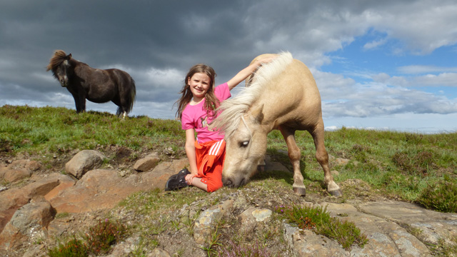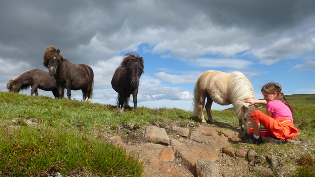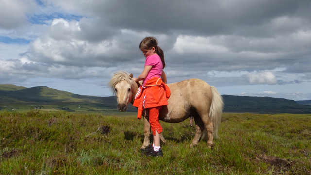 I would never have guessed Shetland ponies would be that trusting and playful. After an hour on our horses Paddy and Tinkerbell, Mia and I headed out for a group of four, and enjoyed their company, while Tobi and Moritz visited the Talisker distillery.