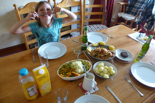 After a great week at the Isle of Skye, we spent a couple of nights at a very friendly B&B, where we met Gwendy and Ken, who had lived in Berlin in the 1960s. More important to Mia: we met their dogs, Paddy and Charlie. Even though the weather got worse (Tobi finally felt like being in the Scotland he remembered again), we spent lovely days exploring more Gardens and admiring vast skies.