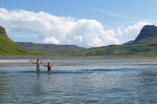 On the Isle of Skye, we rented "Tigh Na Mara", a house by the sea, for one week. We had brought rainclothes and woolen sweaters, and we did not need them at all. Apart from a tiny bit of fog and drizzle on our first hiking tour, we had sun all week long, and even went to the beach twice!