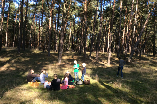 I just finished a great book "The omnivores dilemma", and remember a certain paragraph where the author writes on mushroom hunting. He states that most of those 'hunters' never take strangers or even friends with them to look for mushrooms since they want to keep their spots secret avoiding others to collect their 'prey'. We actually love to take friends and meet strangers while doing so, since the woods surrounding Berlin are simply big enough for everyone to get fed. This year, we went so often, that we had to dry some of the mushrooms, letting them hang from the kitchen ceiling. Julia visiting was delighted: 'your kitchen now looks like one of the Janosch pictures, with tiger and bear preparing food for winter time.' Proud that it does!