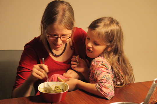 Sorry, Mia, that it had to be you, but I have to post this. Now and then, one of our kids is in a certain mood to decide that he/she does not really like what is on the table for breakfast/lunch/dinner. It's what I could call a dirty little funny war between kids (fussing on something simply to get attention) and parents (having the duty to teach kids we can 1. all be happy that here is enough food and that kids are simply to young and stupid to understand how spoiled they already are with our choices) Tobi and I share the opinion that we are both able to cook quite well and that is is just too boring chosing just the favourite foods of our kids, since we would be stuck with mashed potato and spinach, pizza, pasta, rice, tofu and soup for Mia and an extra Bratwurst and meatballs for Moritz. So now and then, a war has to be fought, that might include flying tableware, cold food and a lot of frustrated family members.