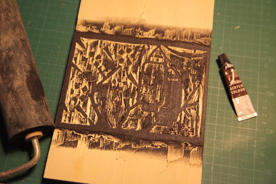 After designing sheep and manufacturing a prototype for a partition, Tobi showed Mia how to do a woodcut. Beautiful!