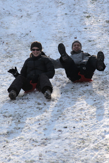 After years of extensive search, my sister Uta and her husband Ralph finally did it this year: they managed to buy and renovate a house in Greater Frankfurt. The occasion of our visit was crowned by perfect weather - after weeks of rain and grey skies and an outward journey through a heay snowstorm, we woke to a clear blue sky and everything covered in white powder snow.