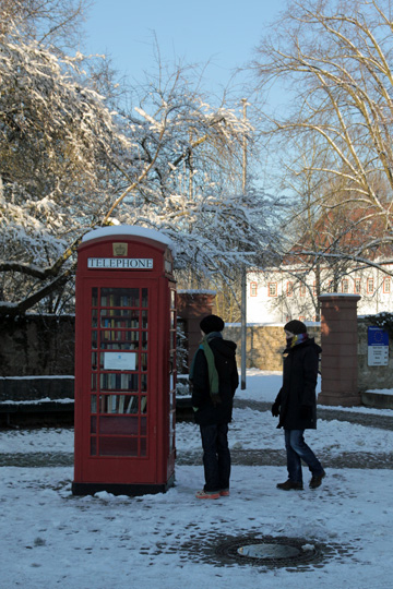 A fine way of sharing books. An old phone box, with lots of shelves, where you can place the books you don`t need anymore, and get yourself new ones.