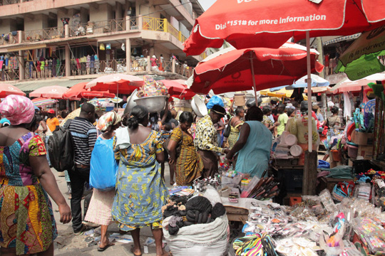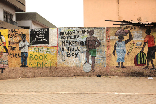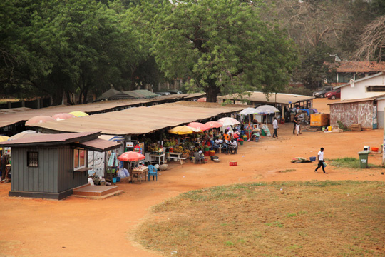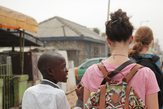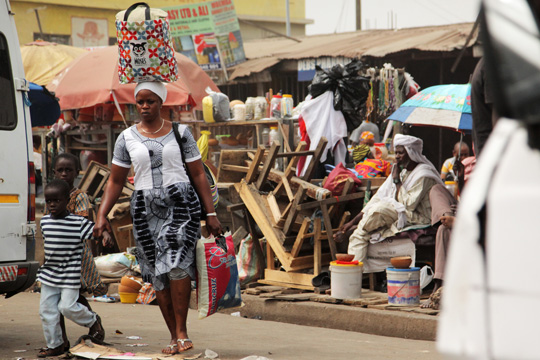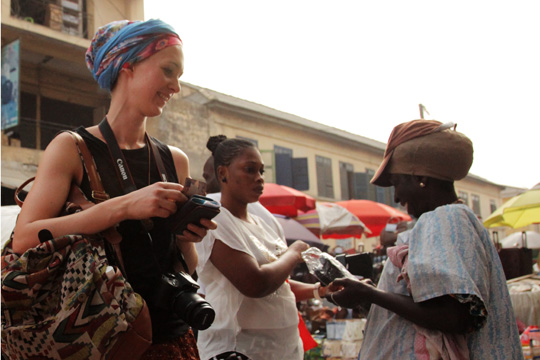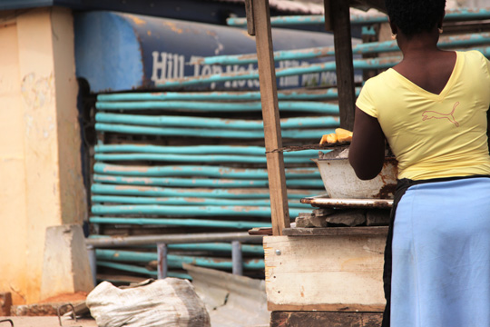 I feel somehow intrigued by the thought that it was European people who came and conquered most parts of Africa, but never invested in the local community. Like a kind of historical racism that is still pondering in a subtle but nevertheless strong way. I went to a big Ghanaian supermarket Š my intention was to bring back a lot of funny food for my family to try that is not easily bought in Germany. And after walking all the pathways and looking at all the goods that were on sale, I ended up at the counter with just one package of peanuts covered in chocolate that were actually produced and sealed in Ghana. I could have found brown sugar, but it had been packed by 2 kg, and cocoa, also quite big, but the whole rest was just imported stuff: fish from Portugal, corned beef from France, baked beans from the UK, milk from France, chewing gum from the US. I knew that Africa has rarely any processing trade, but it never occurred to me in such a massive struck of awareness. Hence most of the products on sale had to be imported mostly from people who would make the most money from it, namely us, the Europeans.