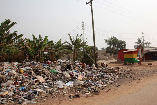 If it had only been the clothes! Even more heart-breaking to me was the sight of used toys, electrical appliances and abandoned car parts piling small markets, certain streets or the huge dump site with mainly e-waste on Lavender Hill. I had seen a couple of documentaries, but it was different and so much more intense to see with my own eyes that there is actually a spot right next to the ocean where shipload after shipload of stuff arrives from Europe we cheaply got rid of because we bought it carelessly and did not even mind that it was only built for short-time usage (i.e. electrical toothbrushes) since compared to our wages, things simply donÕt cost a lot. Compared to that, the amount of plastic from the water sachets used for drinking purposes seems ridiculously small.