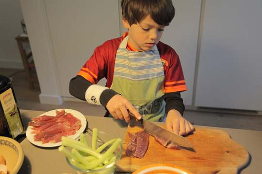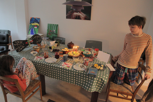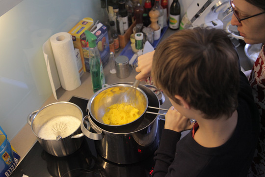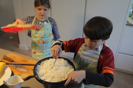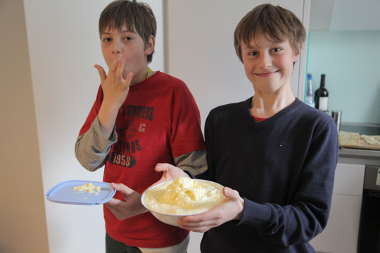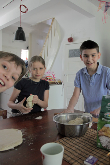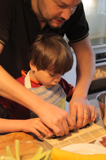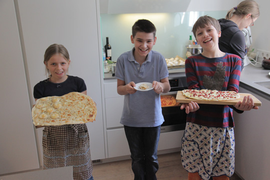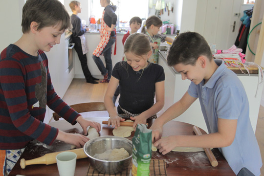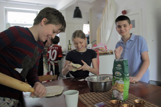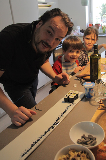 Birthday party menu: Sushi as starter (Mia and Hans), Flammkuchen as main (Luise, Moritz and Mario) and vanilla ice as dessert (Yanes and Konstantin). Yummy!