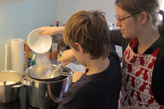 I am even more impressed by his height than by his age - Moritz is now 1,57 m, so already 7 cm taller than his Ayi and only 15 cm shorter than me. As time goes by, I realize he really chose a good day to be born, because as often, the day was sunny and warm, and everything in bloom. We celebrated with selfmade rosemary honey icecream, Oreo-like cookies and thourougly enjoyed our day.