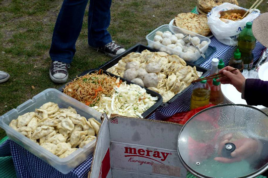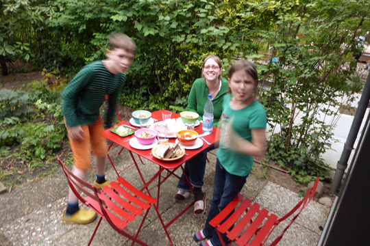 For almost a year, we considered repairing our old camera. But finally, we just bought a new one with a viewfinder, to avoid having the same problem ever again of not being able to take pics because of a cracked display. Here it is: One picture of an ordinary day in summer, us having dinner outside.