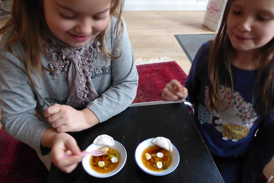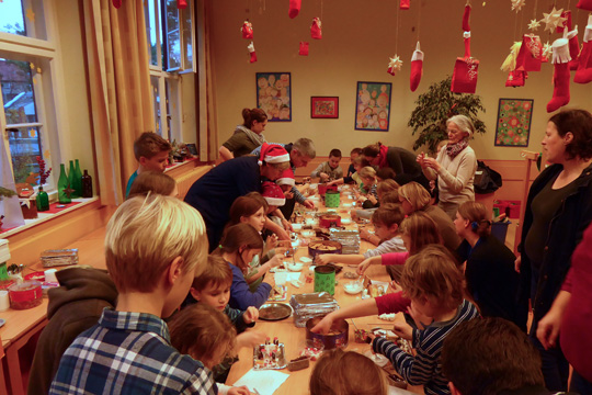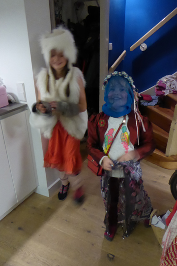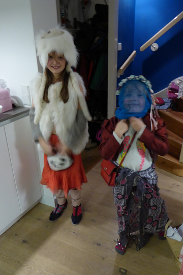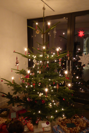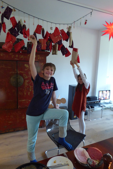 The first of december always arrives too "early", at least it doesn`t feel to christmassy yet and the greyish wetness of november still lingers in the air. Luckily, we have grandparents that always send 24 packages (for each kid!) on time to put them in the middle of our living room, so that we remember the season. The school invites for cookie- house handcrafting, and my boss calls for a competition whose office looks the most decorative. And finally, Mia got an invitiation to a Christmas play at a theatre.