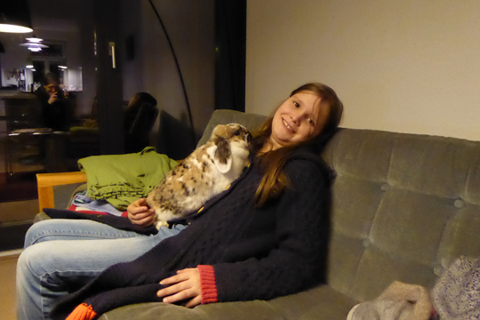Early Christmas present for Franz: Nina the rabbit. Obviously as chubby as he himself is!