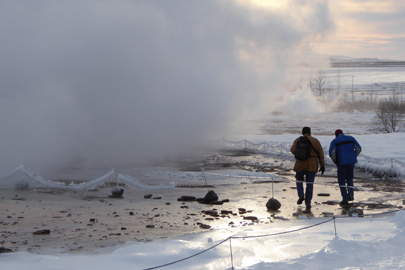 'Geysir' is the only Icelandic word used in both English and German, surely because there are so many springs pulsating in this country. Its meaning is "wildly flowing", prominently used for the great Geysir after that all other geysirs were named.