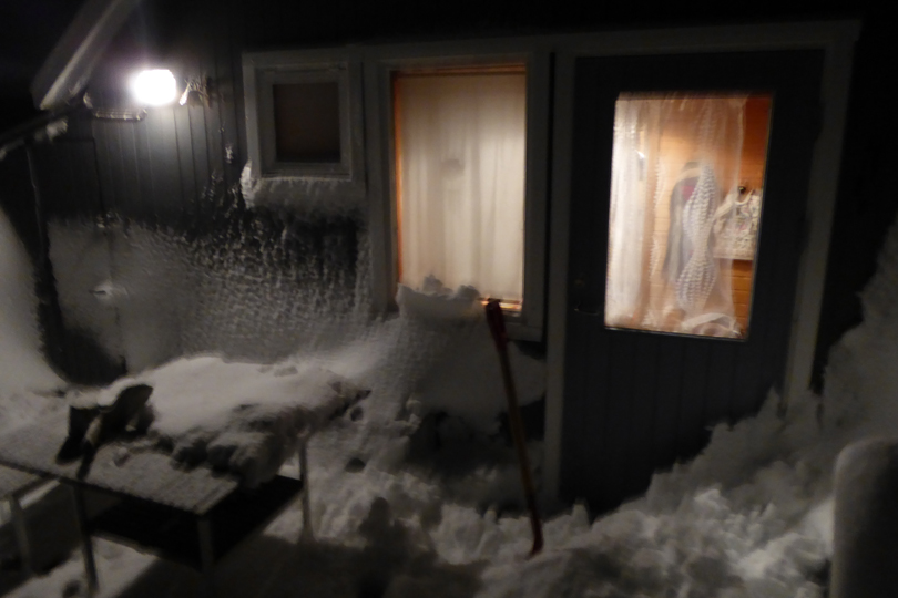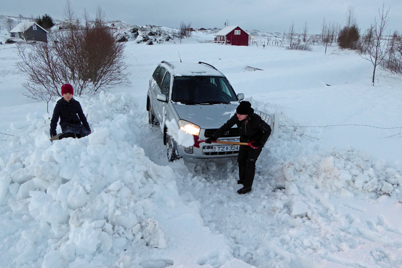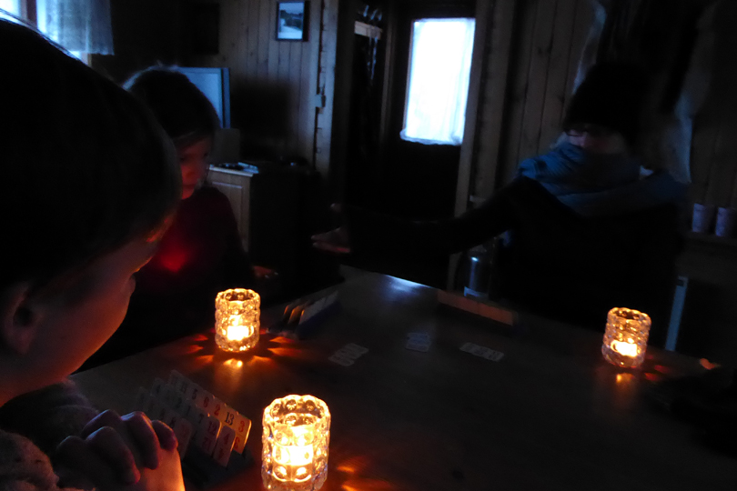 We went to bed imagining the snow storm to calm down. We got up imagining we could visit some place, because we still believed we could move the car. Tobi and Moritz shoveled for a while and then got stuck in the middle of the entrance gate. We still imaginged to spend a calm day with lots of tea (and cookies). We found a movie (Kung Fu Panda) and made ourselves comfortable on the sofa when finally, all lights went off and with it: the electricity. We spent hours by playing Doppelkopf and Rommee with candlelight, realizing how luxurious a life with hot water and heating really is. The power cut went by and we fixed dinner. Luckily, we had packed packet soup for emergencies. When the second power cut came about, we just went to bed, imagining the worst would be over by the next monrning. That was still before shoveling the car out for three hours just to get stuck within the next snow drift.... by that time we were completely out of food, and therefore grumpy (and also a bit worried). Around early noon, the local guy with the snowplough came by and helped us out. Our hero! I haven`t been as thankful as that in a long time, and even though he did not speak or understand English, I hope he felt a bit of that happiness amongst us.