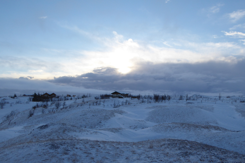 Funny to go swimming in an outdoor pool when everything is covered in snow. We enjoyed the hot water with silicea in our faces while drinking blueberry shakes.