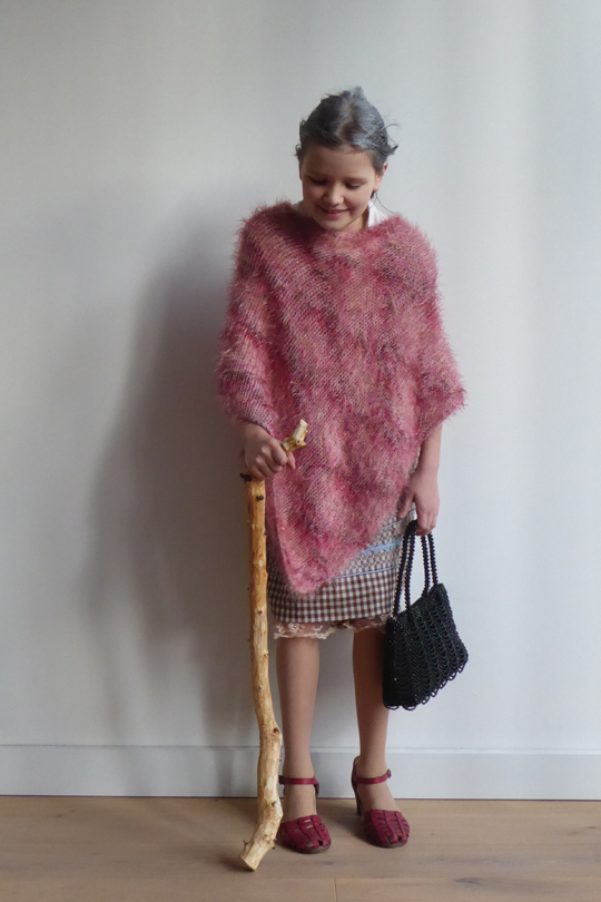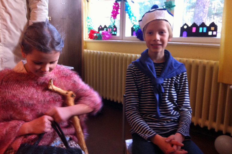 Mia considered dressing up as a Ghanaian lady with the beautiful cloth I brought. The only thing to be solved was the question on how to tan the skin dark. Of my personal experience, I knew that black shoe polish works very well, but is rather difficult to remove. A day before school carneval, Mia luckily changed her mind - she had thought about her grandparents and decided to dress up as grandma. Very fancy grandma!