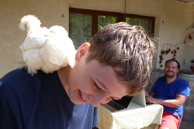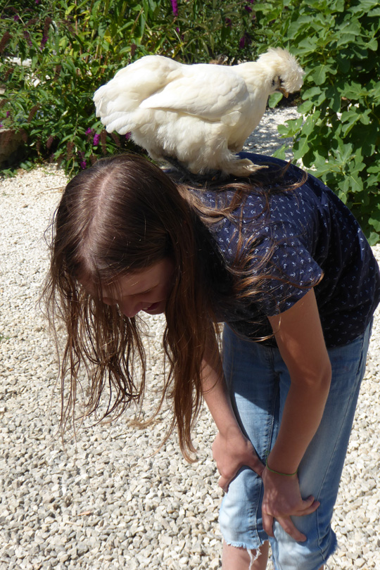 I mentioned the animals. I forgot the pool. Both were really great, among the animals especially one hen named Anni. She was so tame we could just put her on one of our shoulders and could walk around and feed her by hand. In return, we just had to guard her against the big rooster, who constantly chased Anni around.