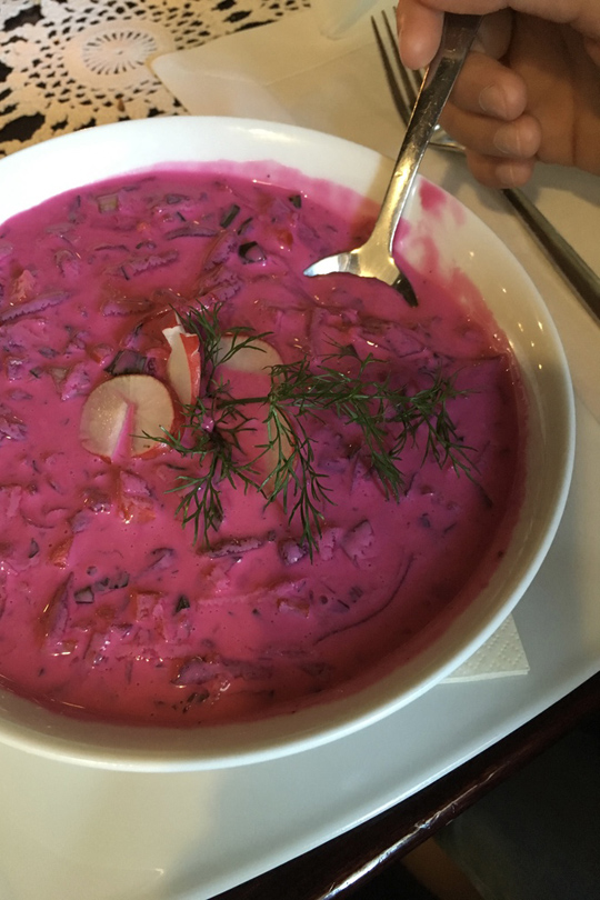This is Chlodnik, a cold soup made from beetroot, cucumber and dill. The best food I got to know newly while in Poland.