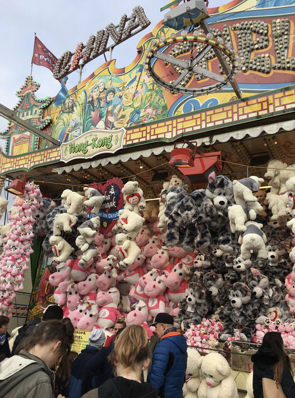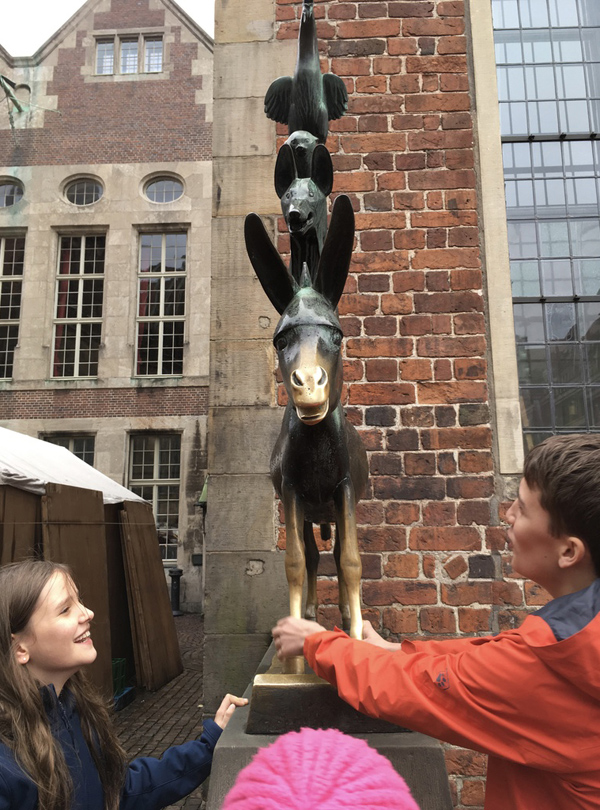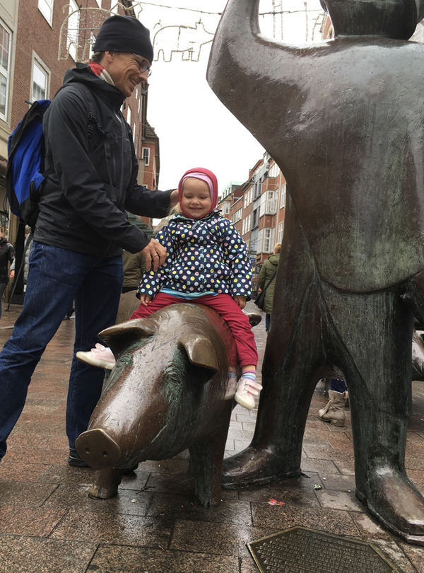 Exactly two years ago, my classmate Katha and her family took a spontaneous decision and visited us in Berlin. It was finally time for a return visit. Because of the foul weather, we started the day in the 'Universum', the local technical museum. It was quite modern compared to the Berlin Technical Museum, with a huge exhibition on human senses. We especially liked the 3D pin sculpture (Mia and Hannah tried around a hundred different postures) and the various animations controlled by movement. Then we took a city tour and had a look at the 'Bremen town musicians' before heading to the annual fair, the Bremen Freimarkt. It was the first roller coaster ride I took in a while, and it made me so dizzy I couldn`t join the others in riding the Ferris wheel afterwards. We had a great time!