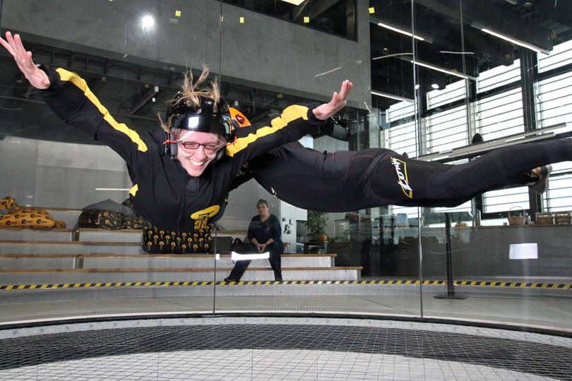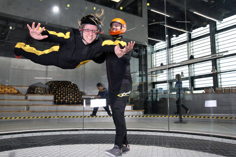 Almost a year after buying the voucher Mia and I finally made it to the newly opened Hurricane factory, where you can find the biggest wind tunnel in Germany. At 5.2 meters in diameter and 15 meters in height, it was quite an experience to float in winds up to 280 km per hour. Mia was a lot better in floating, whereas I did a better job in sticking to the first rule: always smile!